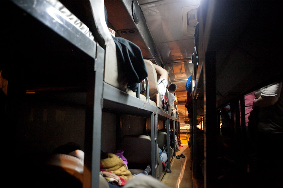Don’t expect to be awoken in the middle of the night by a Prince Charming with dreadlocks, on my trip I was prodded awake by our driver and told to shift over in my bunk bed to allow a frail old woman and her two grandchildren to cosy up and share my space. Bus tour operators do sometimes over-book the bus just to make up for any last-minute cancellations, so be warned. In the end I gave up my bed and tried to catch up on sleep in the bus aisle. The annual income in Cambodia is around USD$2.60 per day, so many cannot afford to drive or fly – therefore journeys over land by locals are taken in cheap, crowded buses.