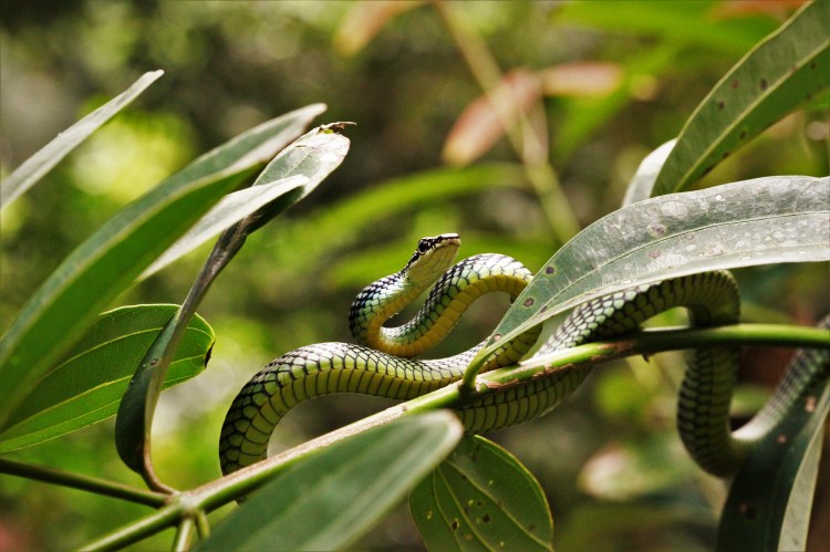 Snake between the leaves.