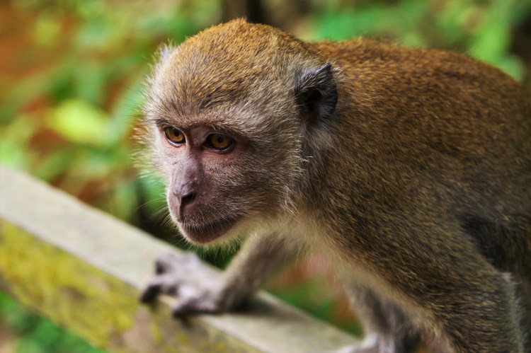 A macaque rests on the fence. [Published in Asian Geographic Junior]